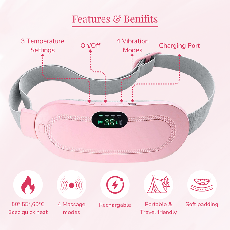 With 3 heat levels and 4 massage modes, you’re in control—find the perfect combo to ease cramps just the way you like.